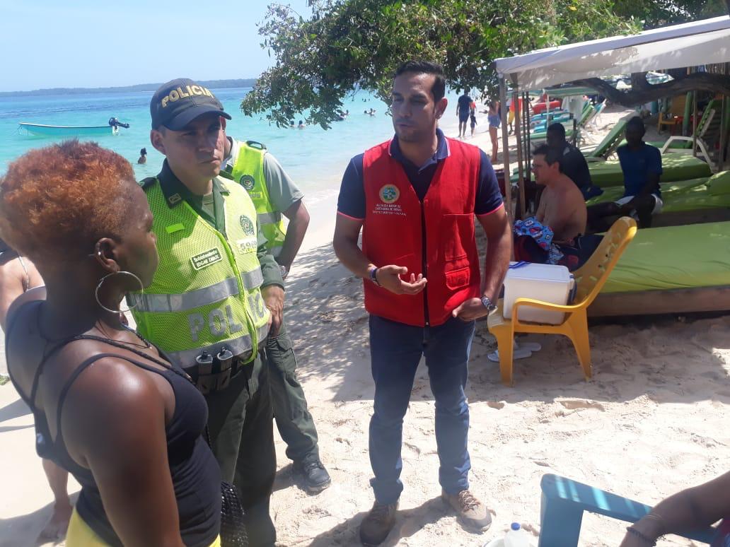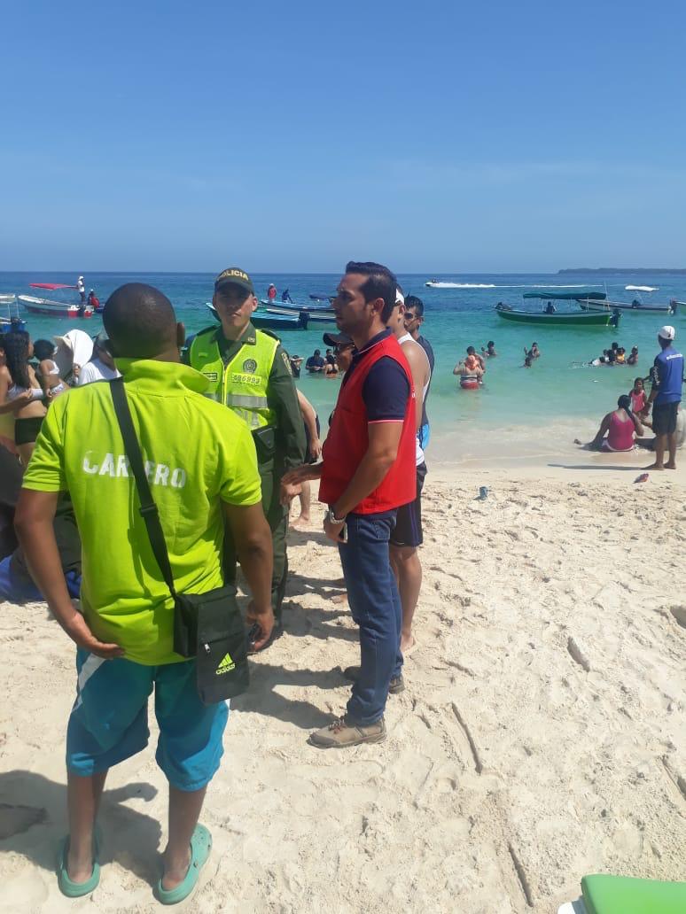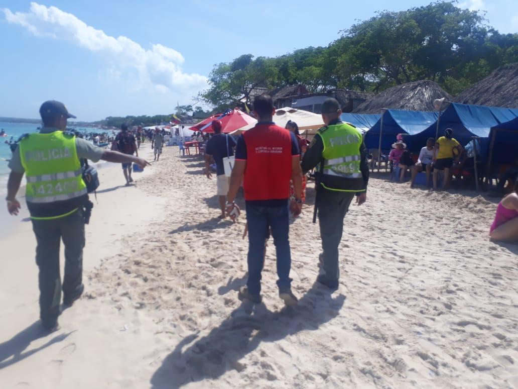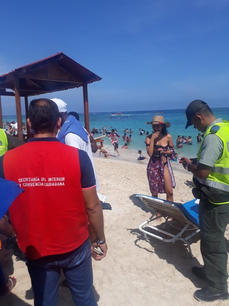 Ya dentro del balneario la secretaria del interior por instrucciones del secretario José Carlos Puello Rubio en compañía de la Policía Nacional, realizaron un recorrido por la playa en donde se brindaron recomendaciones a turistas sobre precios, el estar muy pendientes de los niños y estar pendientes de sus pertenencias durante la permanencia dentro del mar, se logró además realizar la reubicación de carpas, sillas, sillas playeras y camas que se encontraban fuera del límite permitido.
