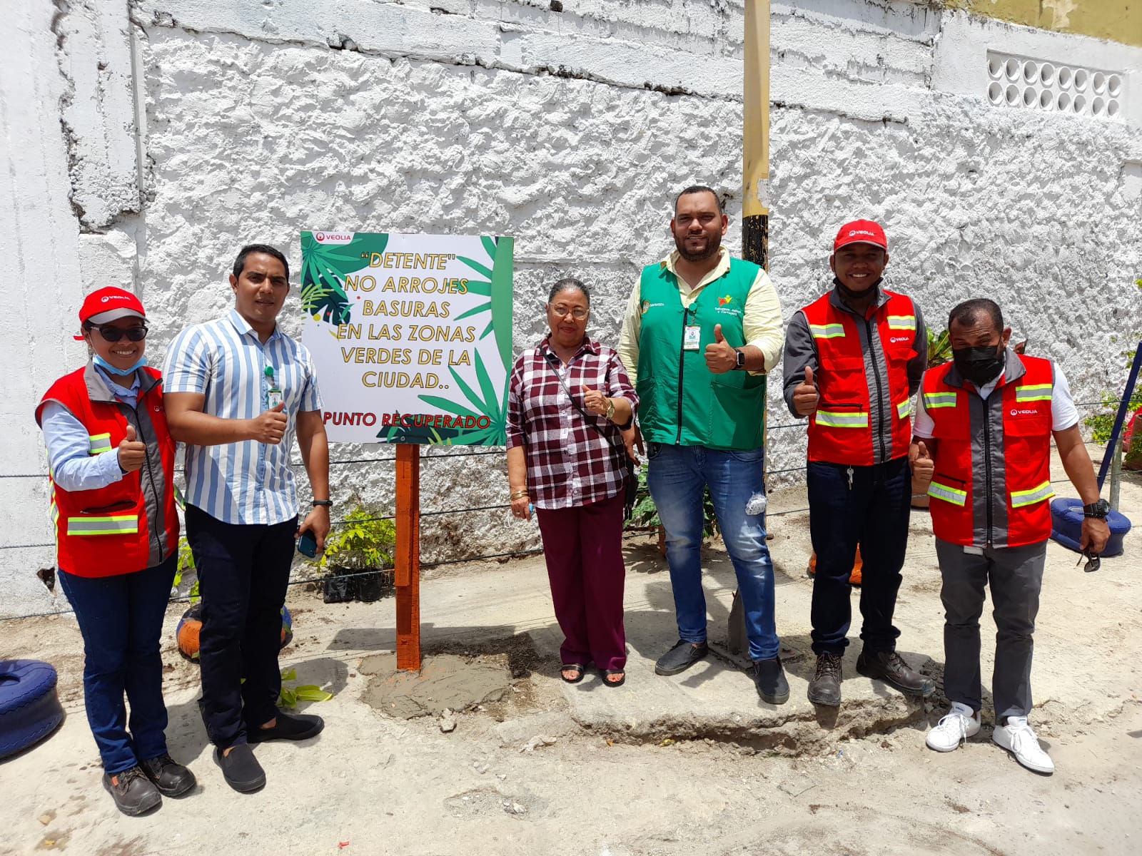 Veolia Cartagena comprometida con la recuperación de las áreas públicas de la ciudad, realizó la adecuación y limpieza integral del punto crítico del barrio Nuevo Bosque contiguo al colegio José María Córdoba, un sitio convertido en arrojo indiscriminado de residuos y hoy se recuperó con encerramiento y siembra de plantas se le entregó a la comunidad un lugar libre de residuos y ambiental.